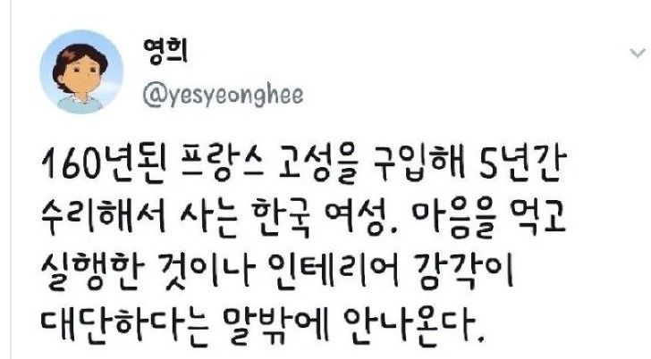 フランスの古い城だ。200年くらい前に建てられたもの。韓国人女性が購入し