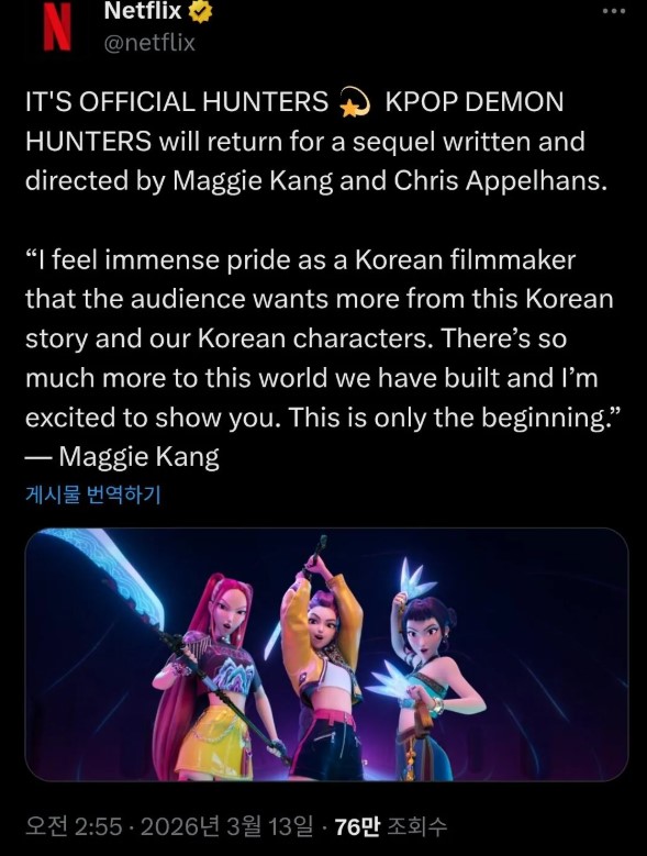 公式発表: 「KPOPガールズデーモンハンターズ」の続編を制作します