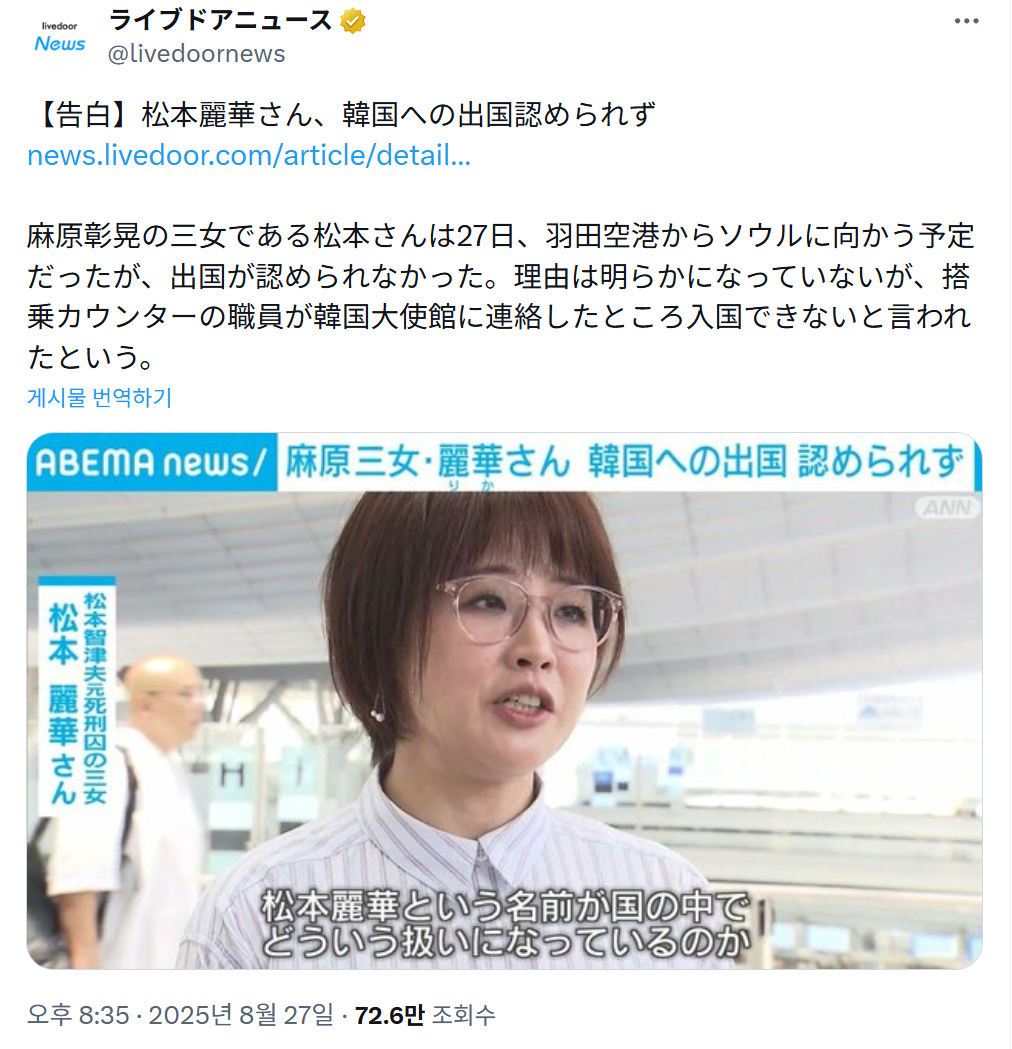 ・単に娘だっただけだよね。韓国は入国禁止なの?