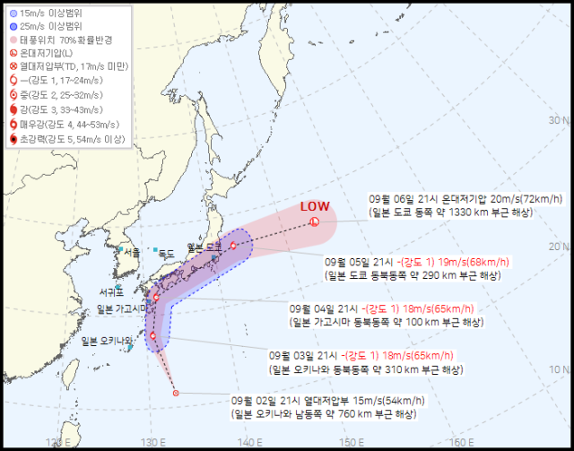 台風15号は韓国をスルーし日本にだけたくさんの雨を降らすべく列島に沿って通過するようです