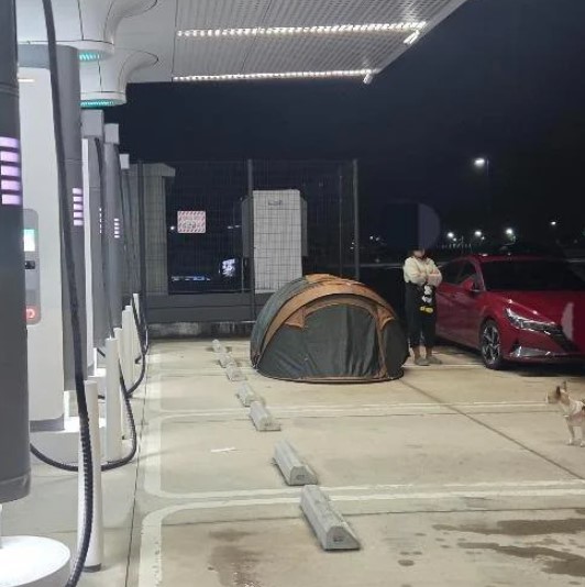 ・充電ステーションでキャンプをしてはいけないという法律はないからね