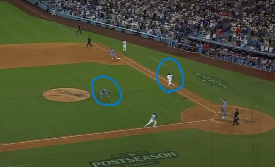 キャッチャーさえ一塁送球を指示したのだが何故かボールをホームに返した。しかもそれが亜送球となり三塁ランナーはホームを踏みドジャースの得点となった