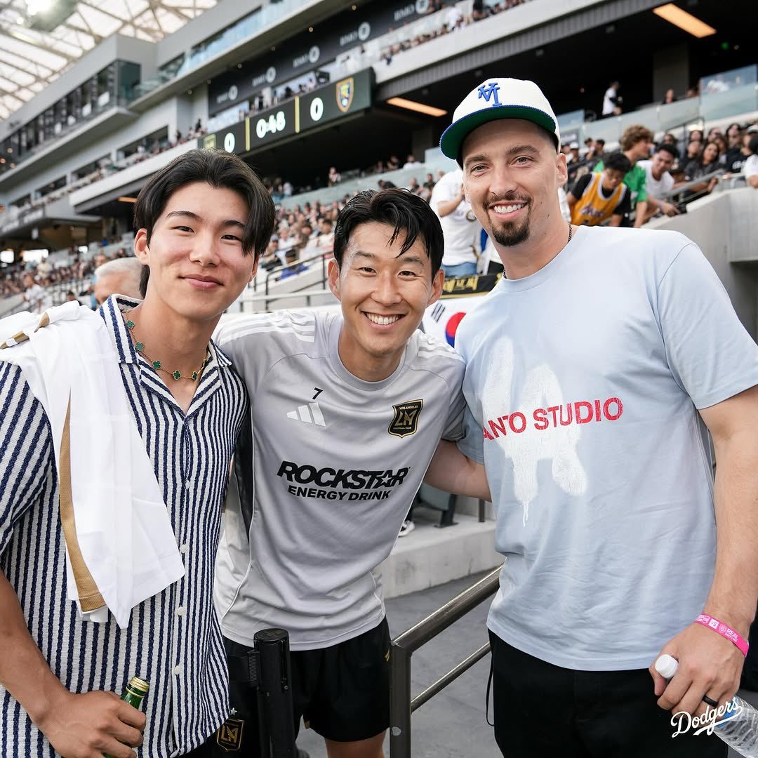 昼間ジャイアンツとの試合を終えたドジャースのメンバーであるスネルとキム・ヘソンがロサンゼルスFCでプレーするソンフンミンの応援に駆け付けた