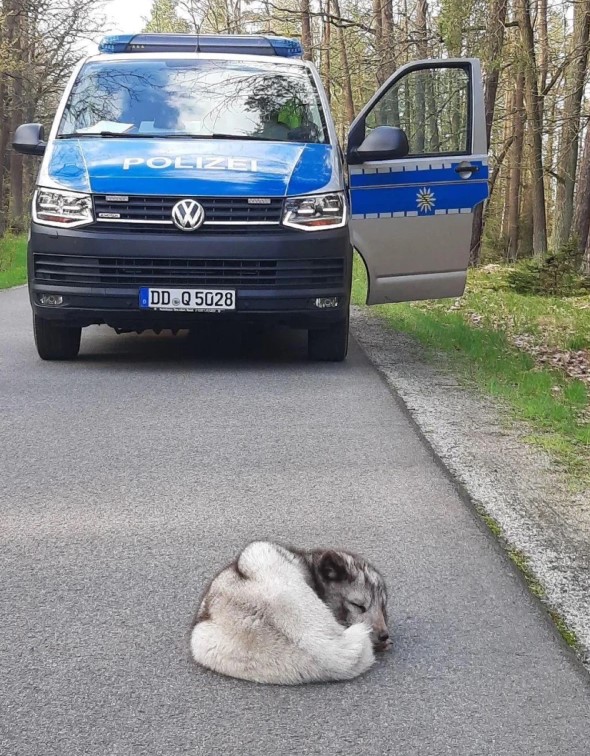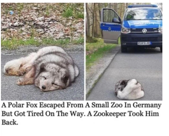 ドイツのヴァイスヴァッサーにある動物園から一匹のホッキョクギツネが脱走した。しかし自由を満喫するのも束の間すぐに疲れてしまったようで近くの道路の真ん中で丸まってお昼寝を始めてしまった