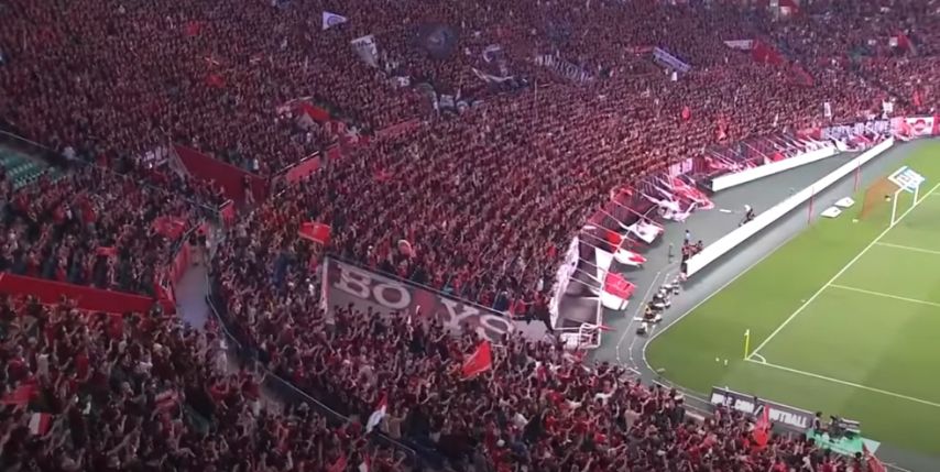 しかも観衆のほとんどが自分の応援するチームのユニフォームを着ているということです