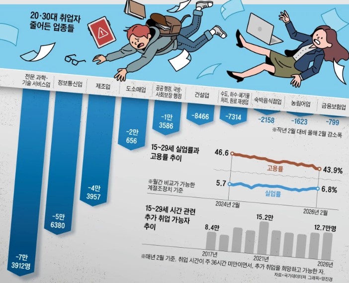 気低迷が続く韓国では仕事が見つからない20代30代の数がなかなか減らない