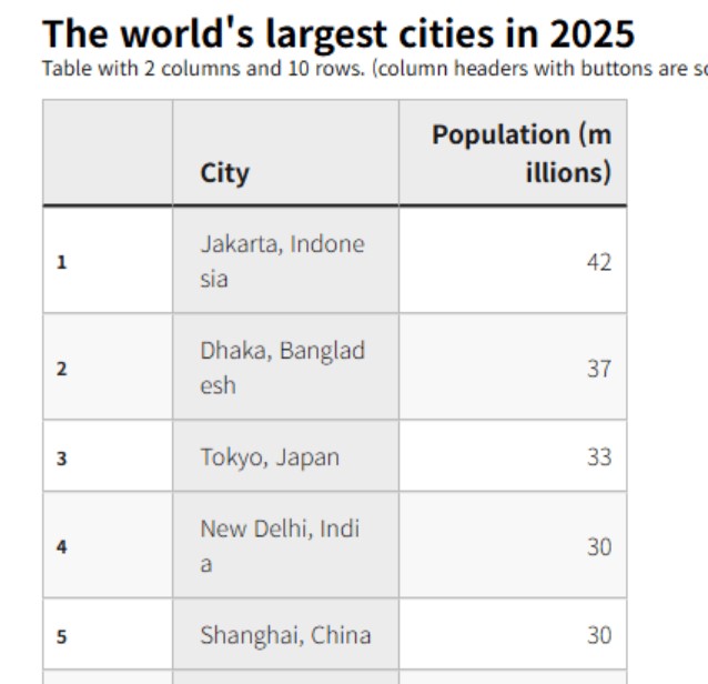今年に一位は人口は 4200 万人でインドネシアのジャカルタとなったわけだ